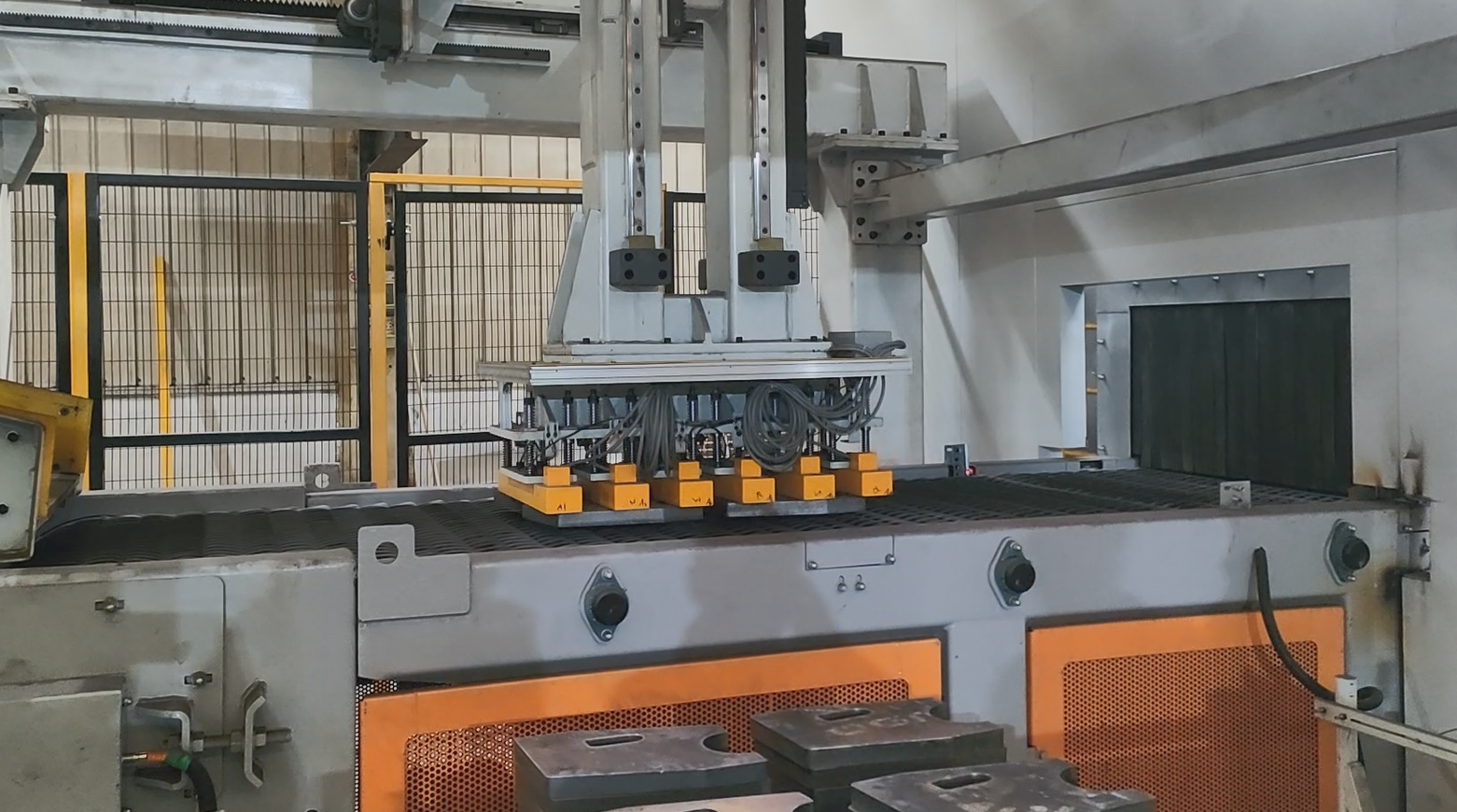 The customer needed an automated way to transfer steel cutting parts from the processing table to the stacking area. HVR MAG engineered a magnetic workholding system that works in perfect coordination with the gantry robot. The system grips each steel part firmly, maintains stability during movement, and ensures precise positioning throughout the transfer process. Even when contact surfaces are uneven, our magnets deliver consistent holding force and reliable performance.
