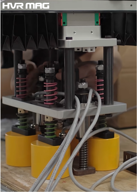 At HVR MAG, we develop electro-permanent magnetic solutions that integrate directly with automated equipment and support stable material handling in modern factories. This project shows our magnetic workholding system during installation on an automated gantry. The photos capture the integration stage as technicians mount and align the magnetic units for accurate daily operation.