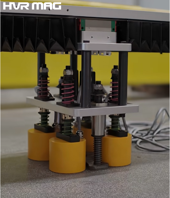Electro-permanent technology brings practical energy advantages. The magnets consume power only during magnetization and demagnetization, while the holding force remains stable without continuous electricity. This feature supports efficient operation and improves process safety. When paired with programmed gantry movements, the system achieves repeatable pick-and-place cycles and consistent positioning accuracy.